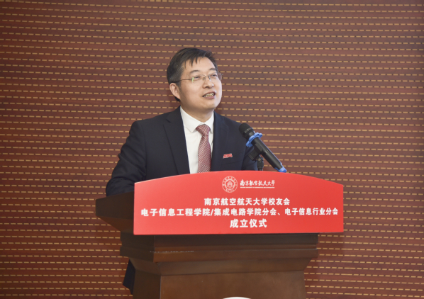 吴启晖宣读了《关于同意成立南航校友会成人网址 /集成电路学院分会、电子信息行业分会的函》,随后,在讲话中表达,今年学校迎来七十华诞,希望通过此次校友分会的成立能够进一步完善横纵结合联系体系,搭建院友和学院合作共融平台,促进院友们事业发展和学院建设发展,更好助力学校,共同为“空天信息化、信息空天化”作出新的更大贡献。