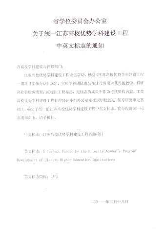 关于统一江苏高校优势学科建设工程中英文标志的通知