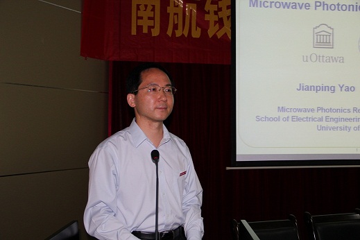 6月29日,我校在成人网址 举行“钱伟长讲座教授”授聘仪式,聘请加拿大渥太华大学终身教授姚建平博士为我校“钱伟长讲座教授”。校长朱荻教授向姚建平教授颁发了聘书并为其佩带校徽,校长助理熊克教授致欢迎辞,学院及人事处有关领导及部分师生出席了授聘仪式。姚建平教授为到会的师生作了题为“微波光子学”的学术报告。