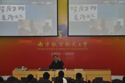 晚上6:30,在2111教室,丁荣茂老师向同学们展示了建校59年来南航所取得的各种骄人的成就,并从“南航发展与传统文化”、“大学文化与大学精神”和“发扬南航传统,创新南航文化”等三个方面进行了热情洋溢的解说。丁书记对学生们寄予了深切的期望,希望学生们铭记南航光辉的历史,立足于挑战与机遇并存的现在,展望美好的未来,以学校的期望和劝勉为动力,以发扬南航大学精神为己任,立大志,做大事,为母校南航美好的明天不懈奋斗。