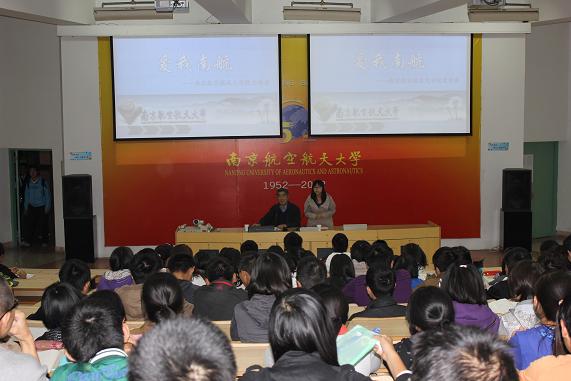 2011年10月25日下午,成人网址 在将军路校区针对大一本科新生和研一新生举办了一场题为“爱我南航”的新生入学主题教育活动。此次活动还邀请了原成人网址 党委副书记丁荣茂老师作了题为“南航办学传统与大学文化”的校史讲座。成人网址 团委书记张晓燕老师,11级辅导员杨紫圆老师出席了此次活动。