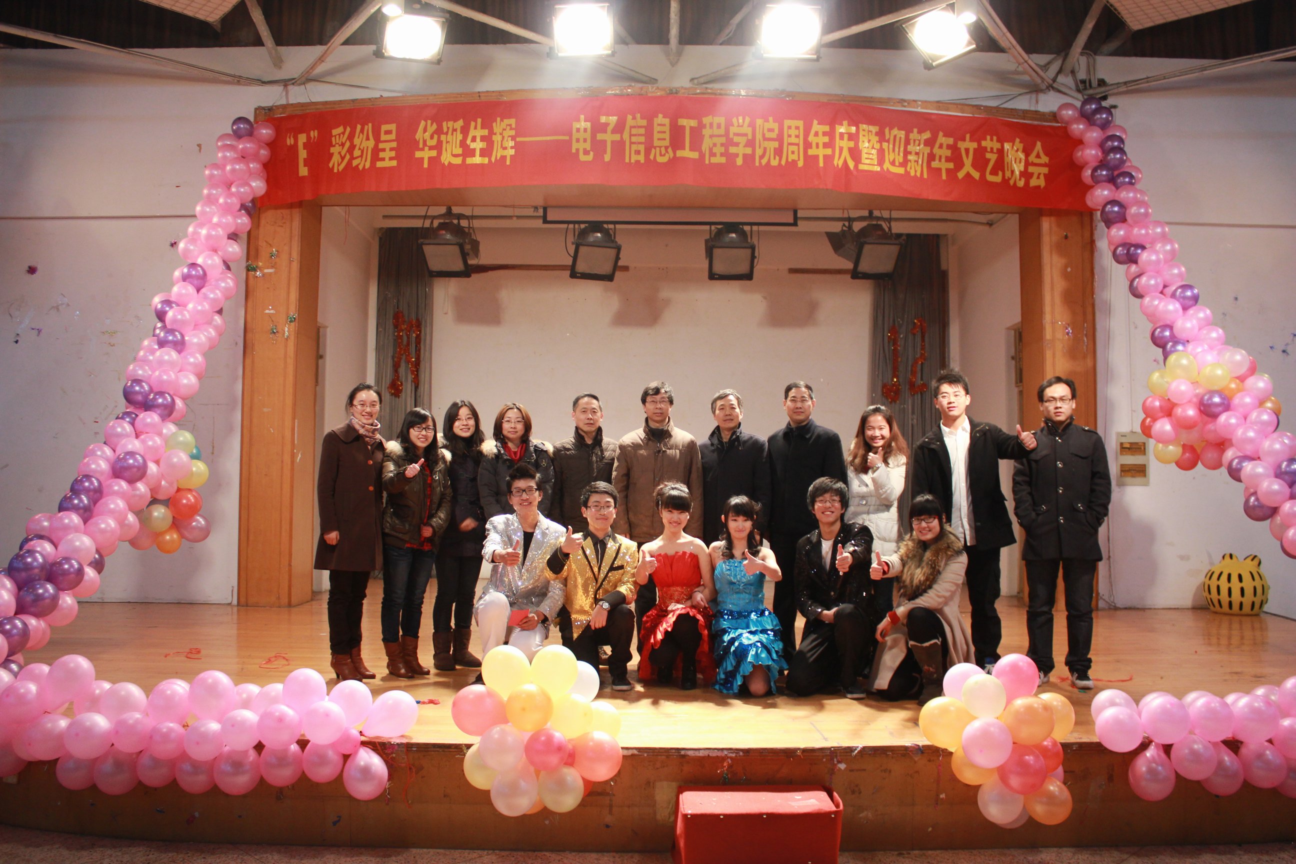 2011年12月29日晚七点,成人网址 “E彩纷呈,华诞生辉”周年庆暨迎新年文艺晚会在将军路校区大学生活动中心隆重举行。学院常务副院长周建江,副院长赵永久、张弓,党委副书记季海群,班主任代表张颖、葛芬,教学办主任谈静艳,团委书记张晓燕以及全体辅导员老师,与400余名同学共同参加了本次晚会。