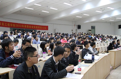 11月1日晚,成人网址 2012年暑期社会实践成果展示暨总结表彰大会在将军路校区2111报告厅隆重举行。学院 “教授工作日”值班教授潘时龙、校团委芮康康、学院团委书记张晓燕以及各年级辅导员和400余名学生代表参加了大会。