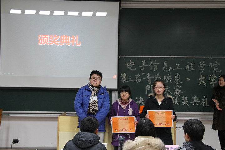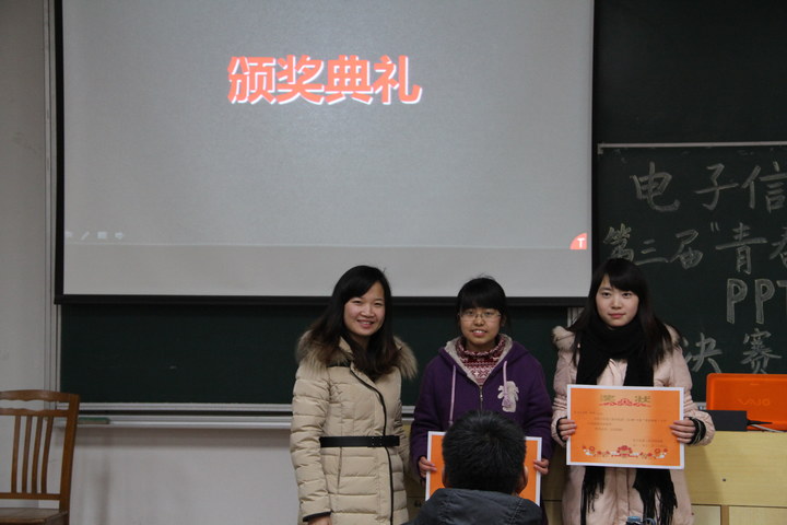 12月24日晚,由成人网址 团委和科协共同主办的学院第三届PPT大赛决赛暨颁奖典礼在将军路校区隆重举行。出席大赛的有11级辅导员杨紫园老师,12级辅导员丁亮老师,徐赛明同学、陈宇帆同学以PPT技术顾问的身份出席本次大赛,到场的还有各入围决赛的参赛代表队成员及前来学习的同学们。
