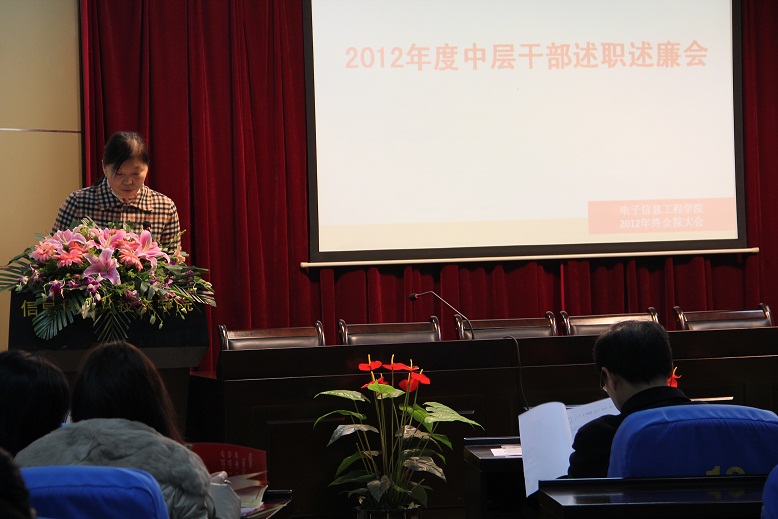 1月14日下午,成人网址 在学院128报告厅举行2012年领导班子述职述廉民主测评会暨年终总结表彰大会。中国工程院院士、学院院长贲德和全体院领导、校纪委办领导以及全院教工70余人出席大会。