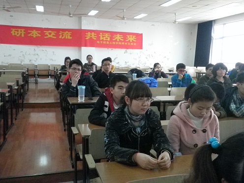 交流会以“研本交流,共话未来”为主题,邀请了成人网址 在读研究生为同学们答疑解惑。电磁场专业刘棋,通信专业张峰,保研的唐姣以及研二张恒龙分别分享了他们在考研或保研路上的经验,如张峰同学,他是从外校考到成人网址 通信专业的,他讲述了自己考研的经历,用他的经验告诉同学们一定要提前做好规划,有计划、有目的地进行复习,而且不要扬长避短,一定要做到各门科目统筹兼顾,这样才不会在考研时被某一门功课拖了后腿。再如保研的唐姣同学,她讲解了保研面试、选择导师以及保研生活方面的一些问题,为准备保研的同学解决了心中的疑问。活动最后一个环节是自由交流,现场气氛热烈。