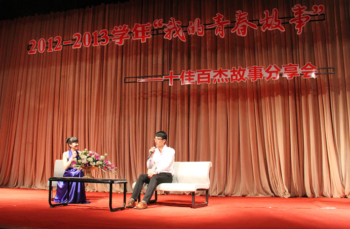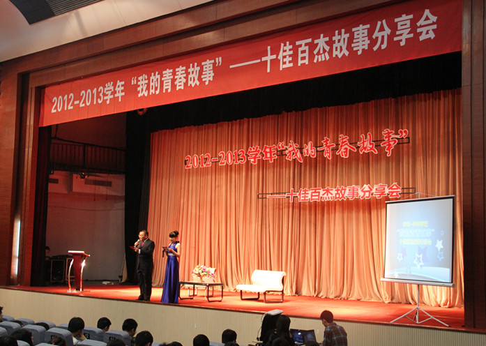 5月5日晚7点,“我的青春故事”2012-2013学年十佳百杰故事首场分享会在将军路校区艺术中心小剧场顺利召开。本次活动由校团委主办,能源与动力学院、成人网址 、计算机科学与技术学院承办,旨在扩大受众面,让更多的同学感受榜样的力量。出席本次活动的有校团委副书记徐川以及三个承办学院的团委书记、辅导员和500余名学生代表。
