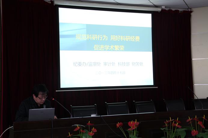 张丕宏处长就当下国家科研经费的审计形势、科研经费使用做了专题讲话,讲话中对审计过程中出现的案例和假发票识别的基本知识做了介绍。