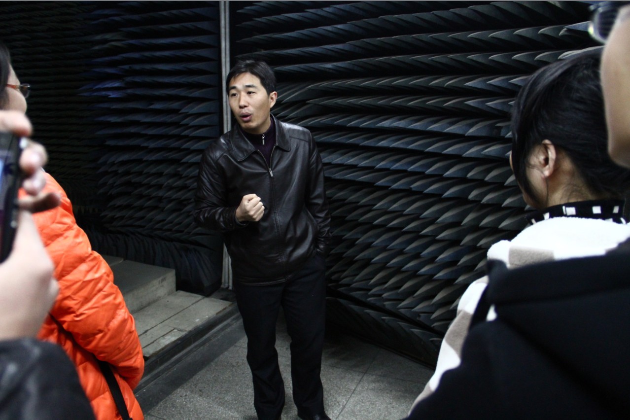 大家首先参观的是成人网址 的重点实验室——微波暗室,学院电子科学与技术系系主任何小祥老师为同学们介绍了实验室的历史和学院的学科实力,并带学生走进暗室近距离接触实验器材。在微波暗室参观结束后,何老师还带大家参观了校园,介绍了A10号楼刚建成时是这一带的地标,它周围几栋教学楼也是以前学院用来架设天线做实验的地方,具有深厚的历史。