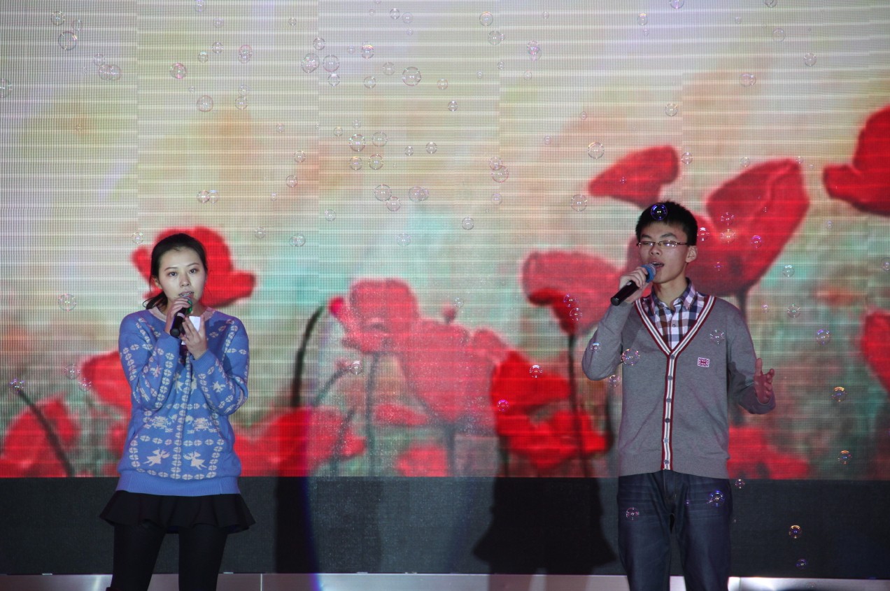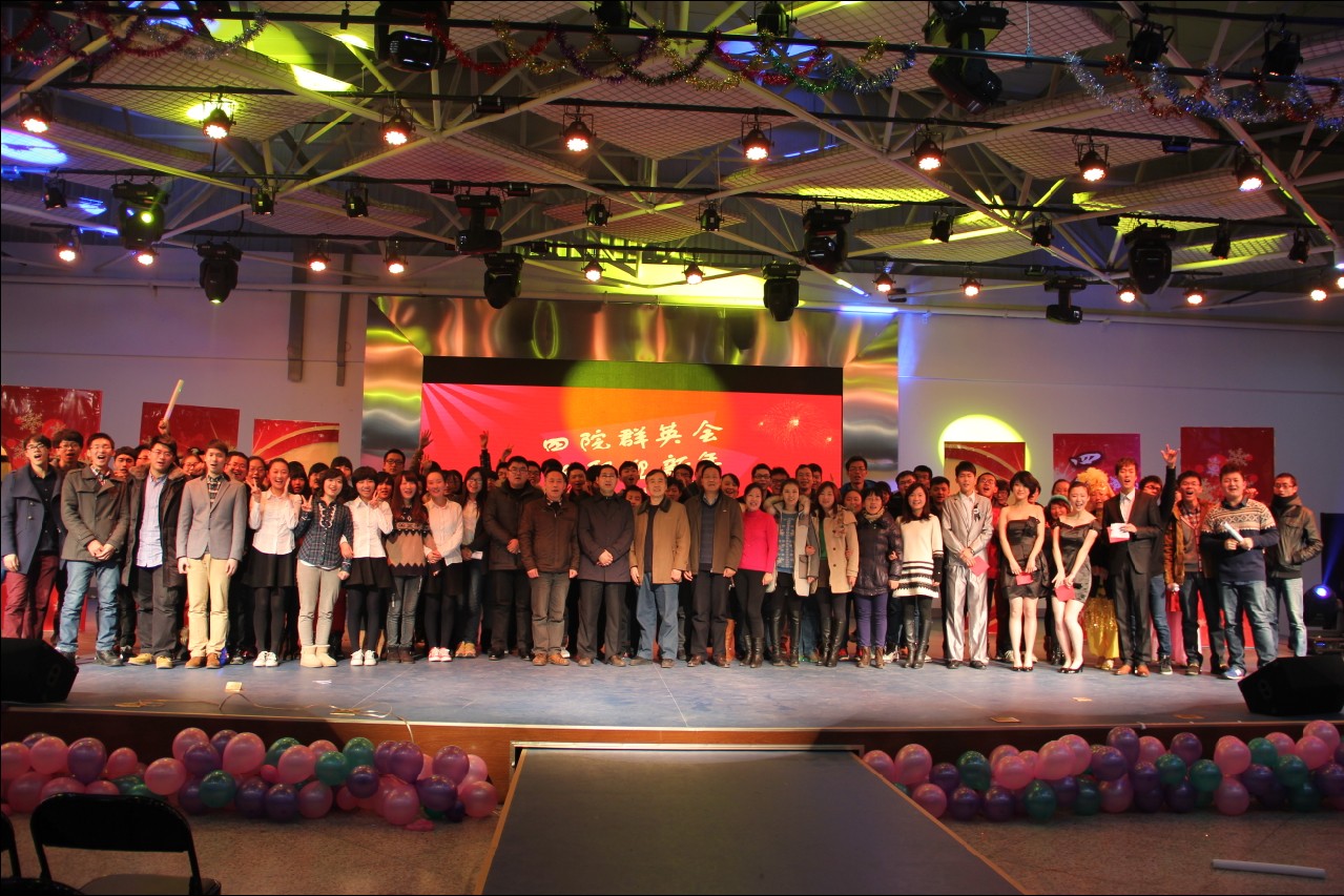 2013年12月29日晚19时,学院“四院群英会 欢聚迎新年”2014年元旦晚会在将军路校区大学生活动中心举行。出席此次晚会的嘉宾有成人网址 常务副院长周建江、党委副书记季海群、副院长张弓、副院长赵永久、学院工会主席黎宁,学院教师代表、各年级辅导员和学院全体学生参加了此次晚会。本次晚会节目形式丰富多样,整场晚会精彩纷呈。冬日的寒意丝毫没有影响到同学们饱满的热情,晚会现场喜气洋洋、热闹非凡。