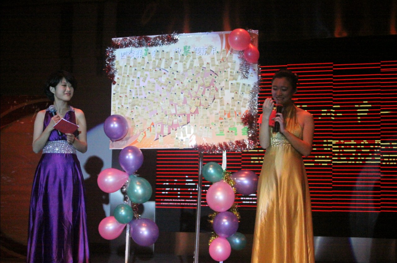 主持人对于2013年学院在"中国梦"的指导下进行的微心愿回复活动进行了总结。2013年,学院积极响应"中国梦",开展回复学生微心愿活动,达到心愿回复率100%的可喜结果。本次晚会上“心愿活动”也来到了现场,特设心愿墙供学生展示自己的新年愿望,抽奖活动也为学生带去了丰厚的新年礼物与祝福。