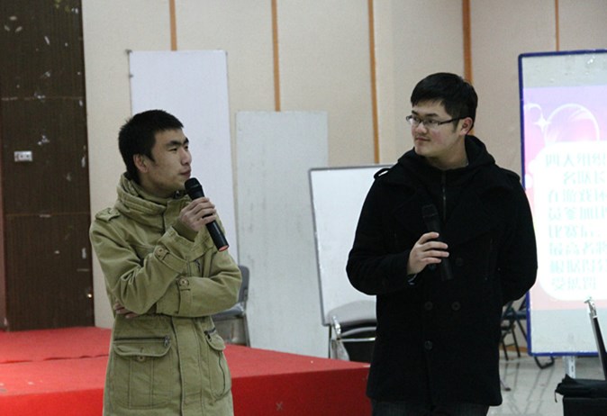 活动在学生会主席万铮的一段相声《我和我的小伙伴》中拉开序幕。随后,学院科协主席曹蔡�与青协副主席陆晓明作为主持人登场。素质拓展环节是此次活动的重头戏,通过三轮游戏(歌词接龙、不NG、五毛一块)既考验同学们的综合素质、各组织内部的团结,又增进了四大组织之间的默契。其中,歌词接龙最为激动人心。由学生会文艺部部长、校园十佳歌手得主石楚源客串主持演唱一段歌曲,歌曲的最后一个字作为题目。最后,活动在大家的合唱中落下帷幕。