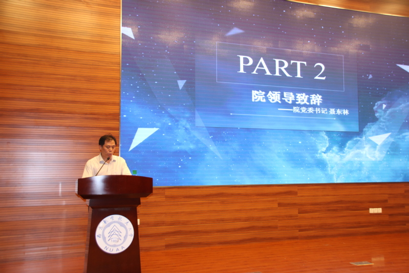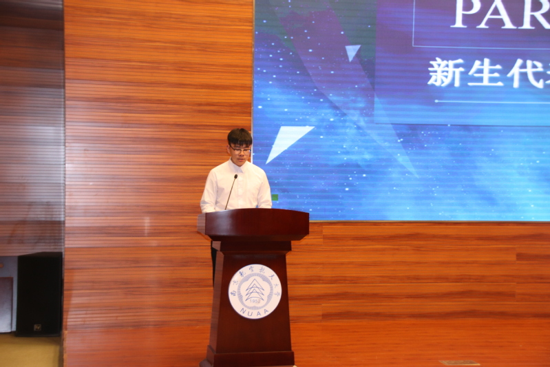 院研究生会主席申子昂向新生们描述了美好的大学生活。紧随其后,新生代表鲍禹桥同学表达了自己对南航的向往和进入南航立下的志向。