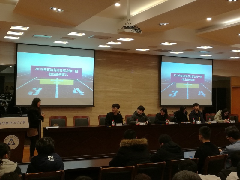 本次分享会共有三项议程:一是学院将对2019届学生就业去向数据展示与分析;二是6位优秀的师兄师姐分享他们的笔试和面试经验;三是同学们交流答疑、分享意见的时间。