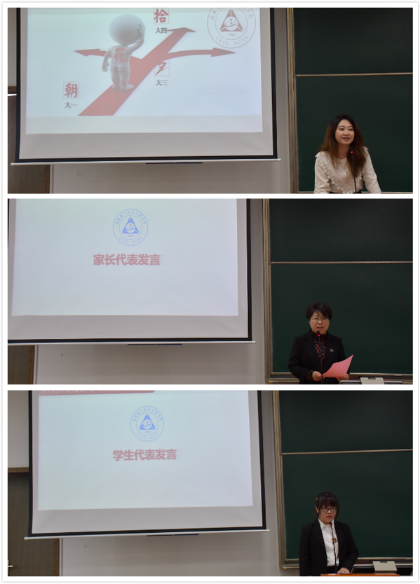 第二篇章伊始,副院长雷磊老师介绍了人才培养及专业分流情况,毕业班辅导员张晓媛老师向家长们介绍了学院历年毕业生的毕业去向。紧接着,家长代表与学生代表依次发言,分享经验。交流会结束后,全体家长与老师们一起来到图书馆东门前的台阶上合影留念。