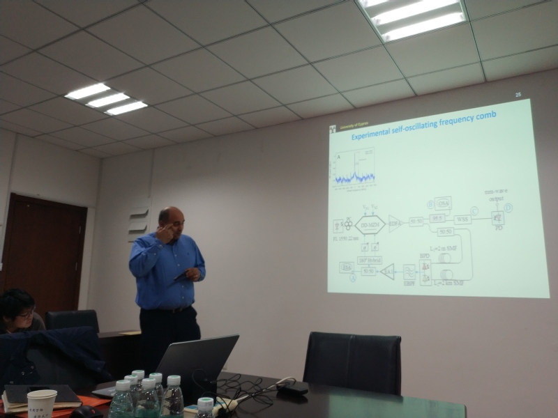 报告中,Stavros Iezekiel教授主要概述了微波光子学的优势和关键应用。重点介绍了基于自振荡光频梳的毫米波和THz信号的光子合成、光电振荡器驱动的光频梳、应用于光载无线中的集成微波光子学以及一些最近应用于电子战中的线性频率网络。报告持续了约两个小时,汇报期间,与会师生积极提问,与Stavros Iezekiel教授进行了充分的交流与讨论。报告结束后,Stavros Iezekiel教授参观了微波光子实验室,并与SPIE协会成人网址 分会部分成员共同用餐,交流了最近的研究进展以及可能的合作方向。
