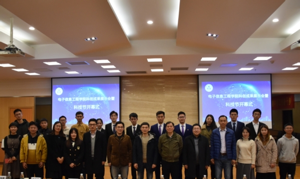 大学生科技创新工作是提升育人质量的重要平台与载体,为促进学生专业能力培养与创新意识养成,推进成人网址 高素质公民和电子信息工程领域的未来开拓者的人才培养目标,12月4日,成人网址 举办了第二届大学生科创成果展示会暨科技节开幕式。成人网址 党委书记聂东林、党委副书记黄彬、华为海思AI生态技术总监符秋杰、华为南京研究所AI生态项目经历宋业伟、学院院长助理洪峰、学院团委书记徐艳惠和全体辅导员一同作为嘉宾出席了开幕活动。