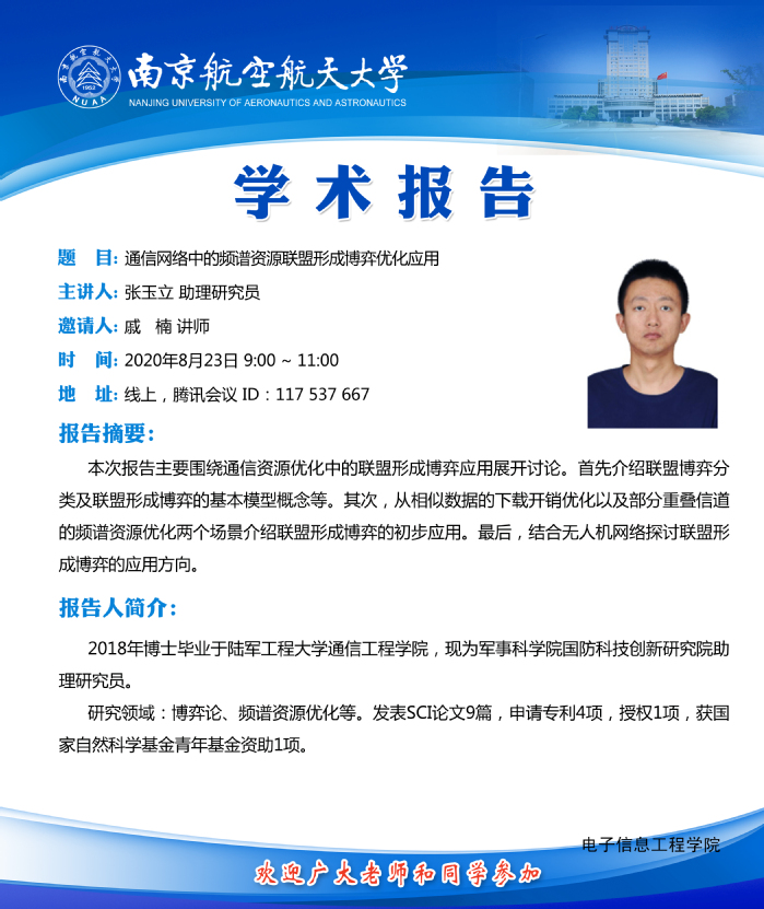 学术报告——通信网络中的频谱资源联盟形成博弈优化应用