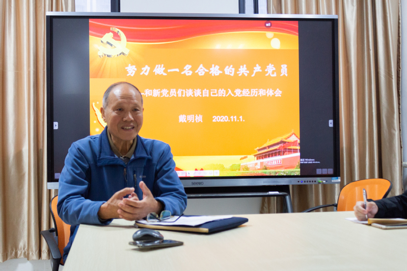 最后,戴明桢老师还向新党员们讲述了自己退休后继续发光发热的事迹,并寄语青年学生党员,要一辈子做一名合格的共产党员,用自己的实际行动为党的事业增添光彩。