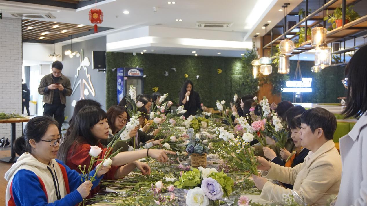 为切实关心学院女教工身心健康,丰富文化生活,陶冶艺术情操。3月15日下午,成人网址 工会组织开展“关爱女教工”主题活动,邀请专业花艺师为学院女教工讲授花艺知识,指导花束制作。成人网址 党委书记聂东林、党委副书记雷蕾、院工会主席黎宁及三十余名学院教师共同参与了此次活动,黎宁主持了此次活动。