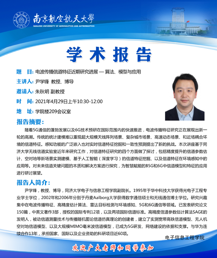 学术报告——电波传播信道特征近期研究进展-算法、模型与应用