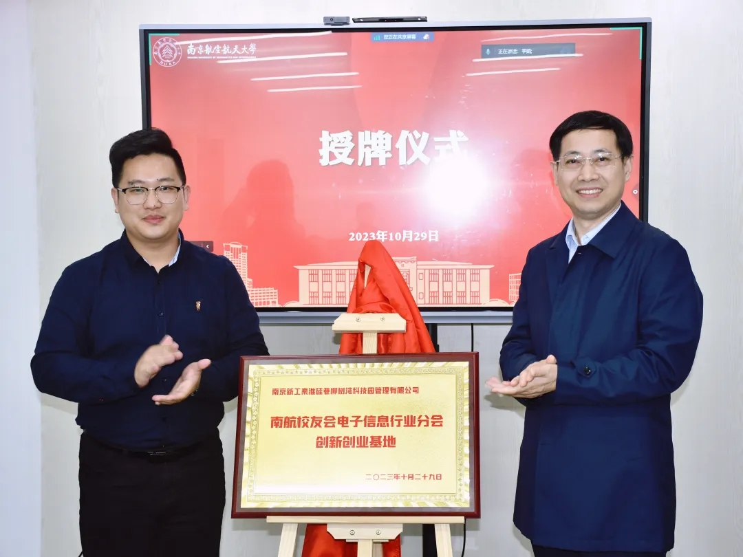 分会秘书长王腾与南京新工秦淮硅巷柳树湾科技园管理有限公司综合管理部主任高磊签署了合作框架协议,并举行了授牌仪式。
