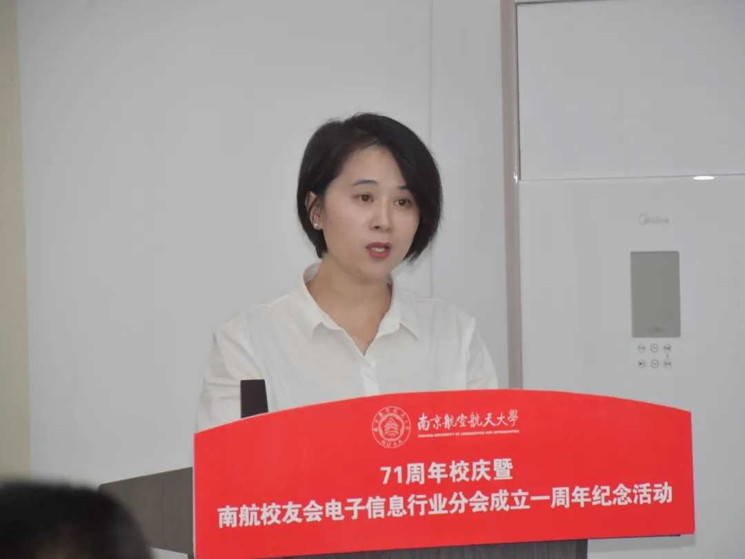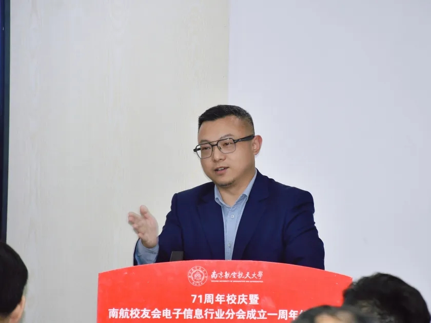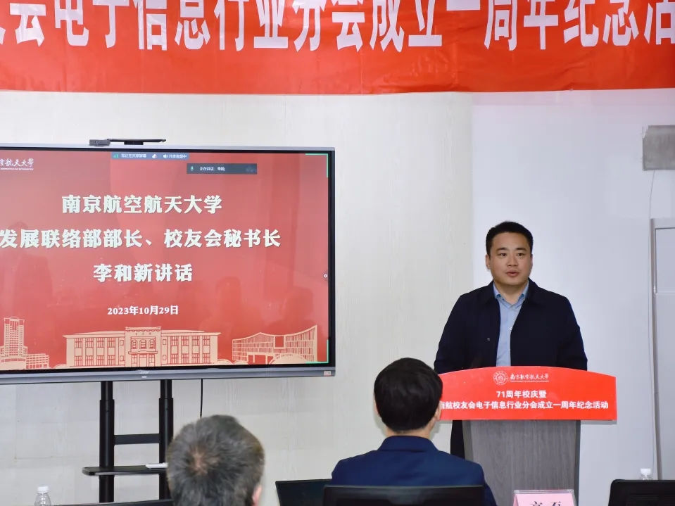 值此南航建校71周年之际,2023年10月29日下午,“71周年校庆暨南航校友会电子信息行业分会成立一周年纪念活动”在南京新工秦淮硅巷柳树湾数创科技园会议中心举行。学校发展联络部部长、校友会秘书长李和新,学院党委书记季海群、常务副院长潘时龙、原党委书记聂东林、副院长刘伟强,特邀嘉宾,电子信息行业分会理事会成员、各专委会成员出席了此次活动。活动分为学术报告和庆祝会议两个阶段,分别由分会副秘书长何小祥、秘书长王腾主持。