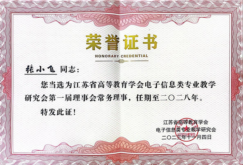 11月4日,江苏省高等教育学会电子信息类专业教学研究会成立大会在南京信息工程大学召开。会上宣读了江苏省高等教育学会电子信息类专业教学研究会成立批复,审议通过了电子信息类专业教学研究会第一届理事名单,成人网址 张小飞教授当选江苏省高等教育学会电子信息类专业教学研究会第一届理事会常务理事。