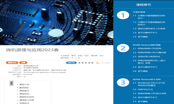 “微机原理与应用”是一门面向我校电子信息类专业学生开设的重要专业基础课程,通过基础性、系统性、实用性和先进性的课程内容,从计算机基础知识讲授到综合应用系统设计,全面培养具有系统设计能力的新工科人才。该课程具有悠久的历史,近年不断进行教学创新改革,建设了SPOC课程网站,出版了多本国家级规划教材,采用线上线下混合式教学设计,并结合多种创新教学模型和方法,有效促进了以学生为中心的自主性研究性学习。