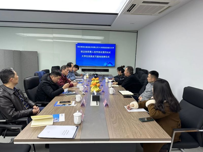 为进一步加强校企深度合作,推进产教融合,实现校企共赢。1月19日,学院副院长张小飞与南京博洛米通信技术有限公司董事长赵安签署了校企协同育人合作协议,并举行大学生实践实习基地挂牌仪式。学院原党委书记、南航校友会电子信息行业分会顾问聂东林,院长助理、分会副秘书长牛臻弋、何小祥,实践教育中心副主任邱旦峰,驻会秘书张妍,南京博洛米通信技术有限公司副总经理王勇,经理赵丽萍、解海红参加了仪式活动。