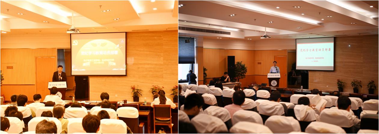 在电子信息学院楼515报告厅召开党纪学习教育动员部署会,全面动员部署党纪学习教育工作,学院班子成员、党委委员、党支部书记及全体党员参加,会议由学院党委书记季海群主持。