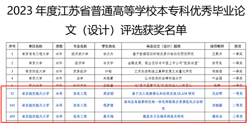 近期,省教育厅公示了2023年度普通高等学校优秀本专科毕业论文(设计)评选结果。成人网址 荣获优秀毕业设计个人一等奖、二等奖、三等奖各1项。此次全校共19篇论文入选,其中一等奖4篇,成人网址 创造近年来最佳成绩。
