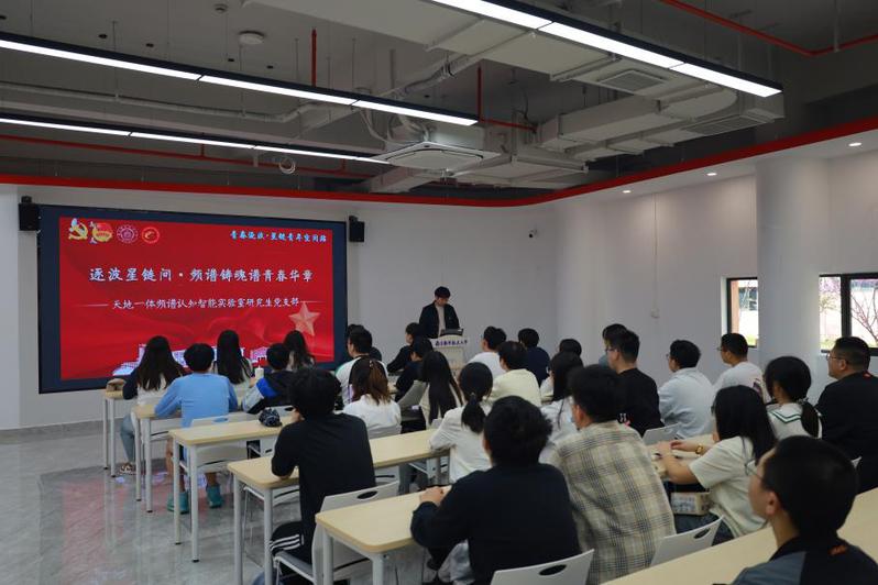 近日天地一体频谱认知智能实验室研究生党支部与本科低年级团支部在天目湖校区党建工作坊开展“逐波星链间·频语铸魂谱青春华章”主题党团活动。活动聚焦于天地一体频谱认知智能实验室介绍、科研经验分享等主题,为党员与团员们搭建起知识传递与思想碰撞的平台。