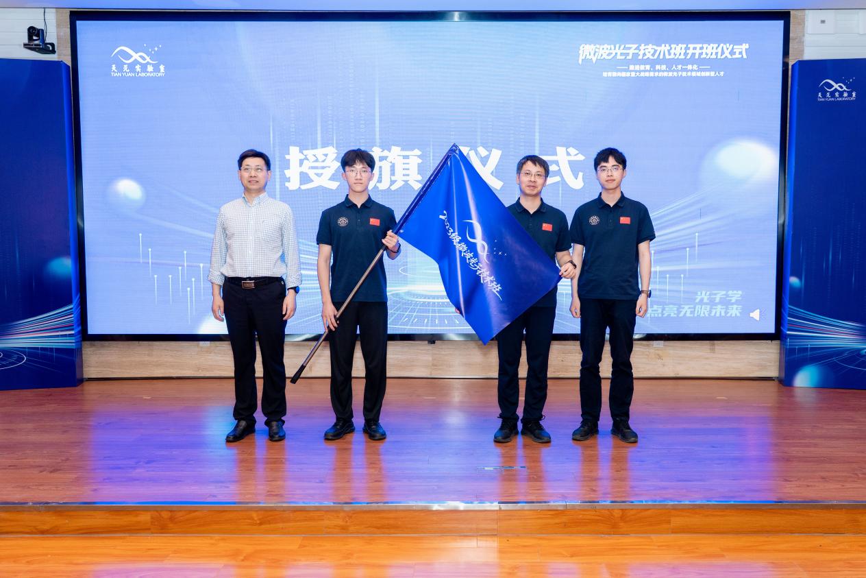 经过前期申报与选拔来自长空学院及成人网址 的25名2023级学生成功入选首届微波光子技术班。电子信息工程学院党委书记季海群宣布了入选学生名单,并为首届班级班长刘泽宇授予班旗。首届班主任潘时龙教授、兼职辅导员章志健上台合影。