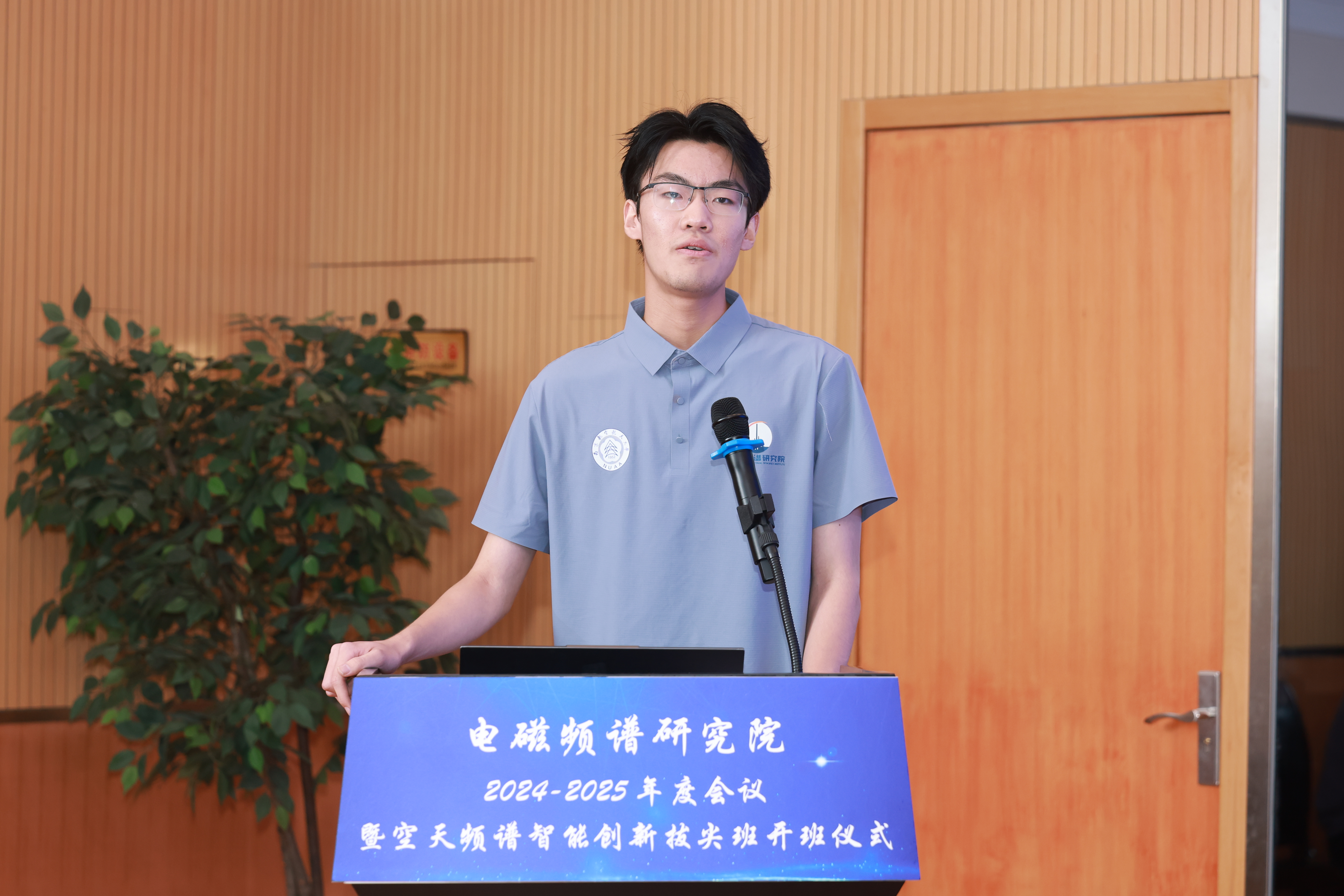 空天频谱智能创新拔尖班的开班仪式之初,学生代表宋泽汐分享他对未来学习的期待和计划。宋泽汐深刻认识到空天频谱智能的战略重要性,深感肩负的责任与使命。他承诺以饱满热情投入学习,深入钻研理论并投身科研实践。期待在优秀导师引领下,探索前沿知识,锤炼创新能力。他代表全体学员立志,以学长学姐为榜样,胸怀报国志向,努力成长为兼具情怀、学识与创新力的拔尖人才,为国家科技发展与频谱安全贡献青春力量。