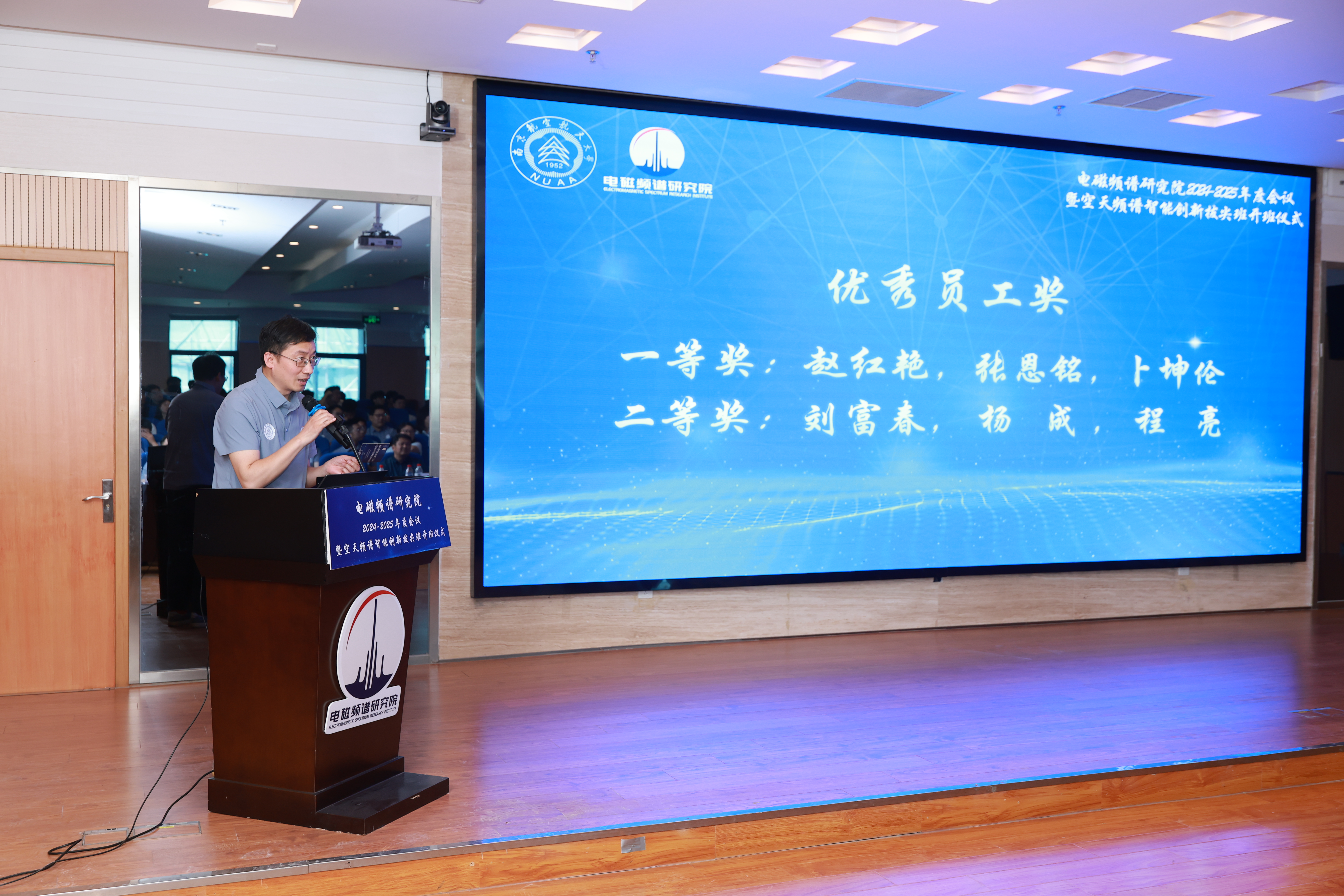 面向发展新质生产力和实现高水平科技自立自强的时代要求,着力提升电磁频谱领域核心竞争力,2025年6月29日,电磁频谱研究院召开2024-2025年度会议。成人网址 副校长吴启晖教授、新加坡院士马凯光教授、江苏省工信厅无线电管理局金雷局长、江苏省无线电监测站孙佩珂副站长、研究院战略指导组专家田畅教授与张磊教授、研究院副院长张小飞教授与董超教授,研究院各创新中心与研发中心主任、研究院教师、研究生与科研岗人员以及空天频谱智能创新班首批学生共同参加了此次会议。会议由天地一体频谱认知智能实验室研究生党支部书记徐睿主持。