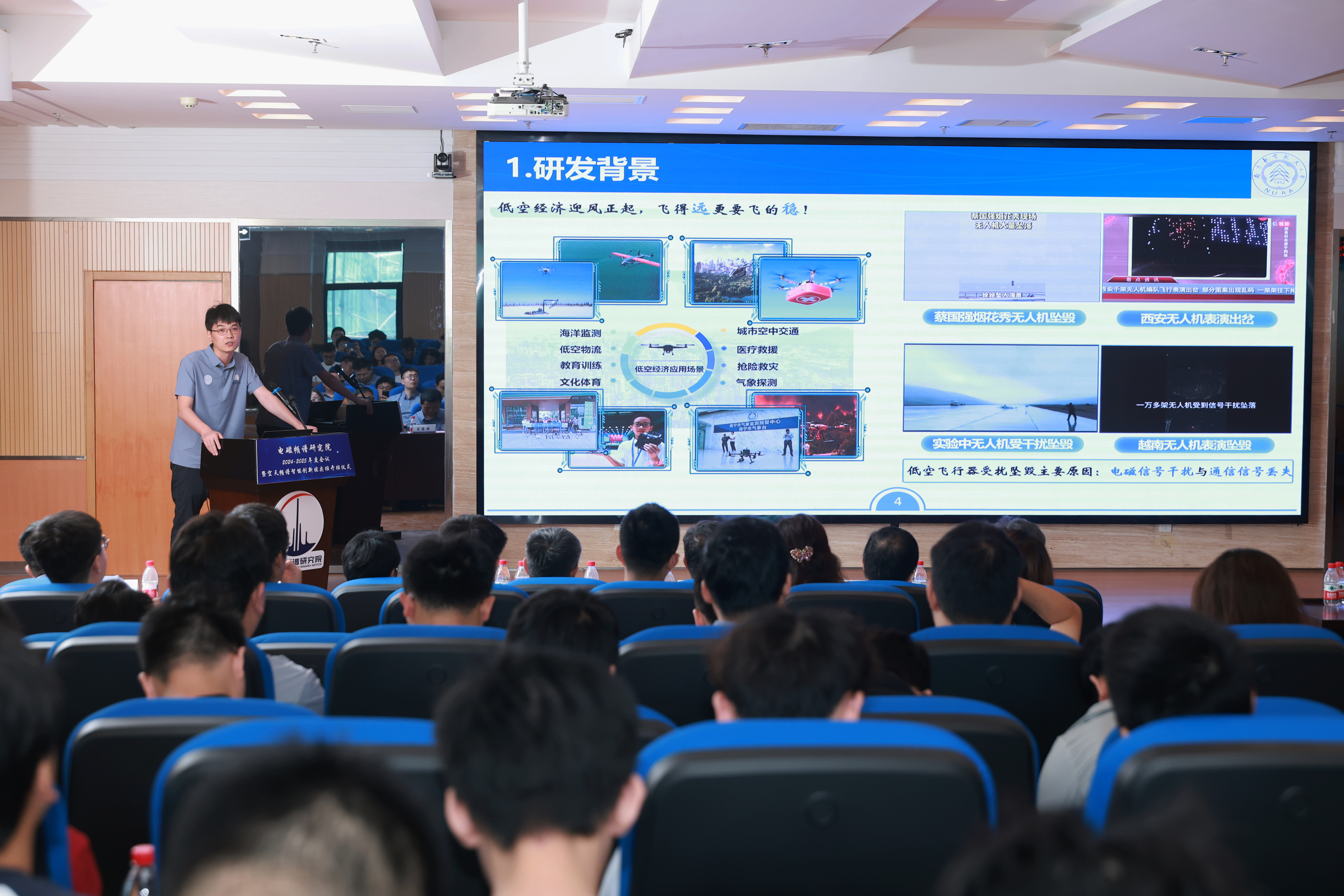 认知智能创新中心主任周福辉教授则展示了具身智能与电磁频谱大模型的前沿探索,重点交流了智能体在频谱域理解、推理与自主决策能力上的跃升及其在复杂电磁环境下的应用潜力。认知安全创新中心主任朱友文教授围绕低空安全管控平台建设汇报了最新进展,阐述了该平台如何综合运用多源信息与智能算法,为日益增长的民用及特殊场景低空活动提供体系化的安全保障能力。认知射频创新中心主任施永荣教授则带来了宽带异质异构集成相控阵天线及微系统方面的技术革新,该项研究致力于核心器件性能,为未来智能系统射频前端的高性能演进提供了坚实基础和核心技术支撑。