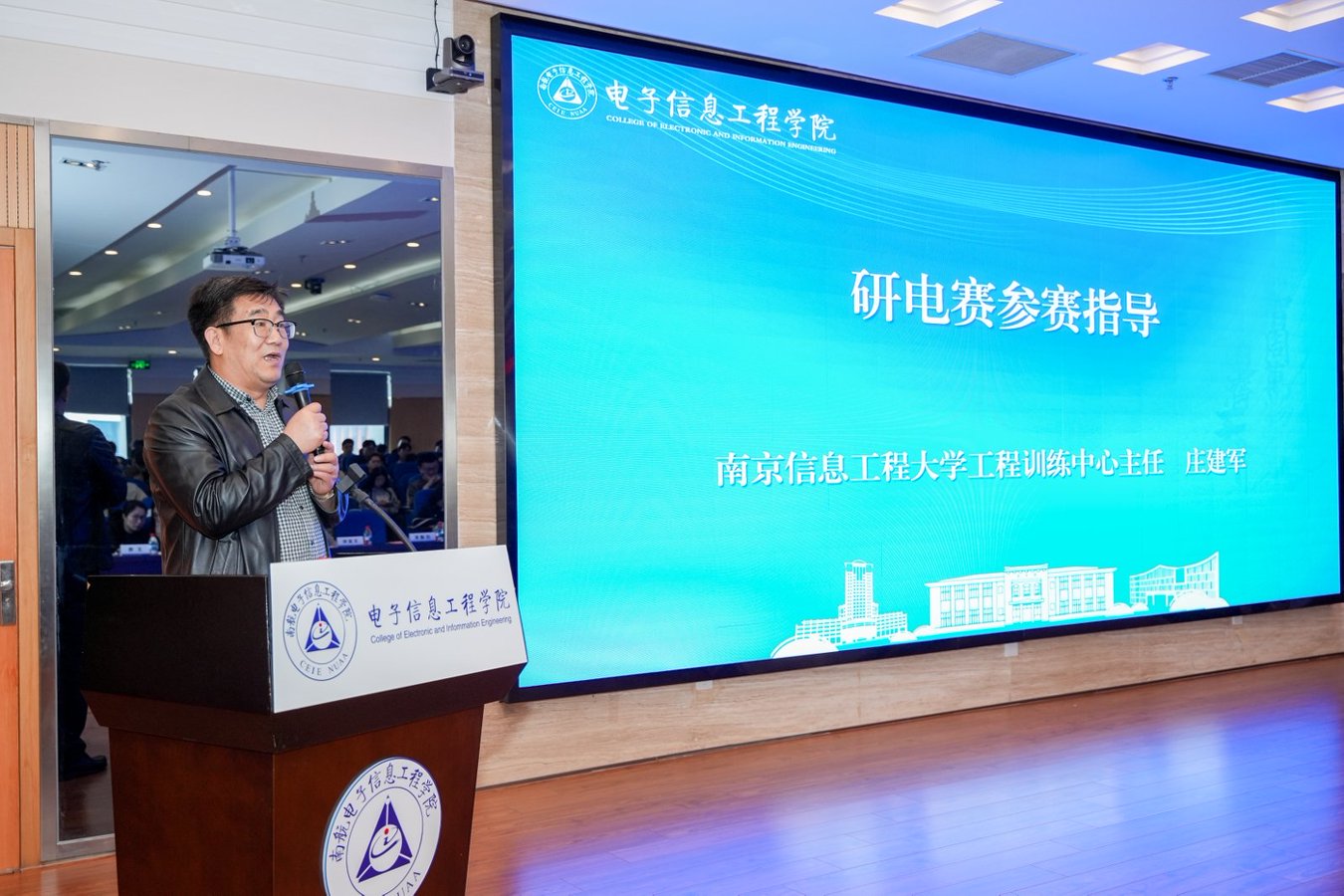 本次活动汇聚了中国电子学会、赛事组委会、南京信息工程大学、华为技术有限公司、飞腾信息技术有限公司、优利德科技(中国)股份有限公司、烟台睿创微纳技术股份有限公司等多方行业权威专家,校研究生院、成人网址 相关负责人及全校参赛师生代表共同参与活动,会议由成人网址 副院长李茁主持。活动聚焦赛事政策解读、参赛经验分享、企业资源对接等核心内容,为我校研究生参与电子设计类竞赛搭建了专业交流平台。